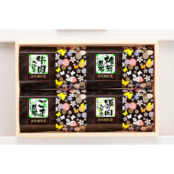 内容:牛肉ごぼう50g×1、椎茸昆布50g×1、ごま昆布50g×1、畑の肉みそ煮30g×1