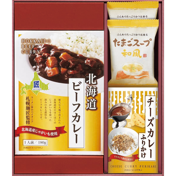 内容:ビーフカレー180g×1、FDたまごスープ(和風)×2、チーズカレーふりかけ(5g×3袋)×1