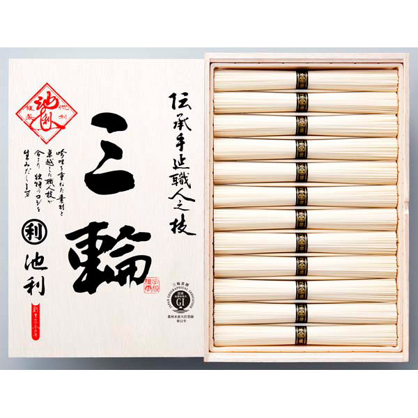 今も昔ながらの三輪づくり、手延べづくり。伝統を受け継ぐ老舗の味です。涼味をそそる透明感、強いコシとなめらかな喉ごし、そして素麺を熟成させることで生まれるオリジナルブレンドの小麦の香り。今も昔も変わることなく一本一本丁寧につくられる手延べ素麺を素麺発祥の地、三輪の里からお届けしています。