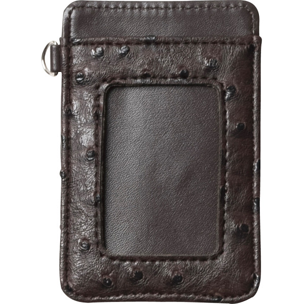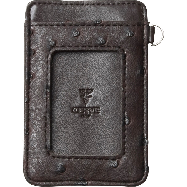 チェルバ オーストリッチ型押し 両面パスケース ブラウン