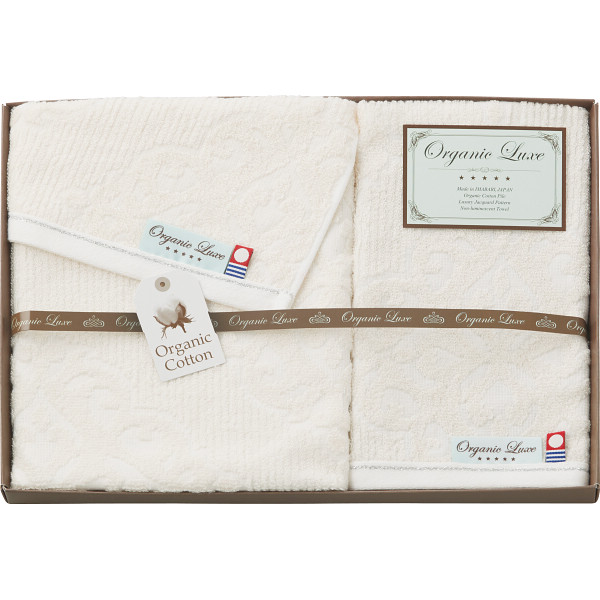 人にも環境にもやさしいさを贈る、オーガニックコットンのタオル。パイル部分にオーガニックコットンを使用。優雅な文様のジャガード織が落ち着いた雰囲気を醸します。