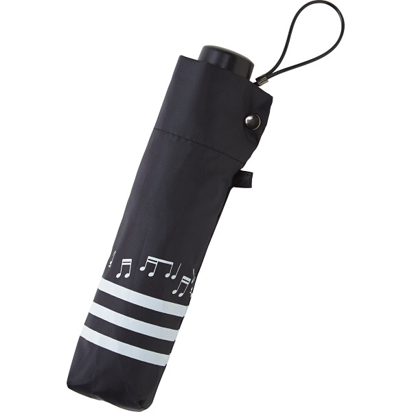 トゥジュールアンサンブル 晴雨兼用丸ミニ傘 ブラックボーダ音符柄