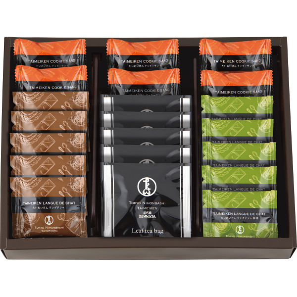 内容:ラングドシャ×5、ラングドシャ(抹茶)×5、クッキーサンド×6、紅茶ティーバッグ2g×5