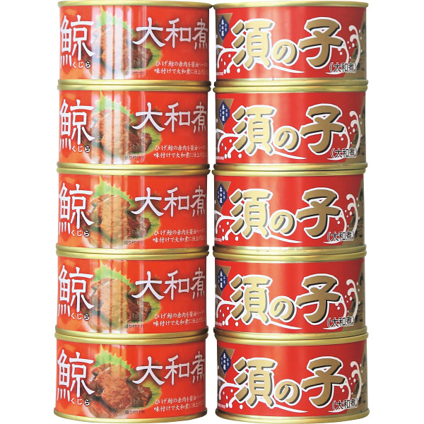 内容:鯨須の子大和煮170g×5、鯨大和煮170g×5(缶切り不要)