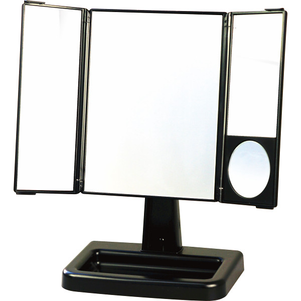縦位置でも横位置でも使える三面鏡。縦位置で使うと仰ぎ目、伏し目がよく見えアイメイクの必需品。拡大鏡も付いているので念入りなお化粧も簡単にできます。