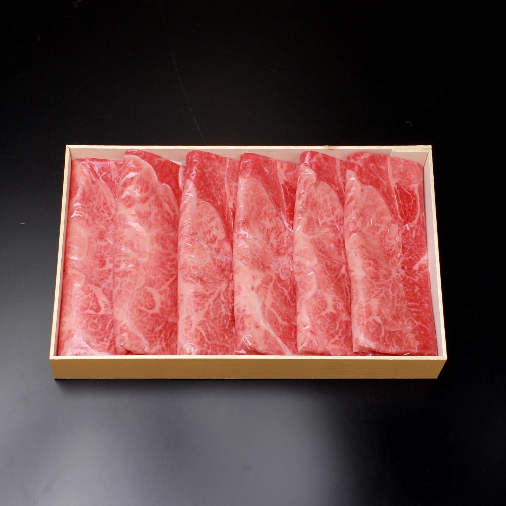 黒毛和牛の赤身。霜降りが苦手な人でも食べられるすき焼用。結婚の内祝や御中元・御歳暮などギフトにも。脂肪分が少なく赤身の多い肩ですが黒毛和牛ならではのサシも入り、さっぱりとしつつも旨味が味わえる部位です。スライスした肉は一枚一枚シートにはさみ、極力空気に触れないよう梱包いたします。保存の際もスライス一枚ずつに分かれているため小分けにすることが簡単にできます。すき焼はもちろん、ひと口大に切って炒め物や牛丼などにもご利用いただけます。