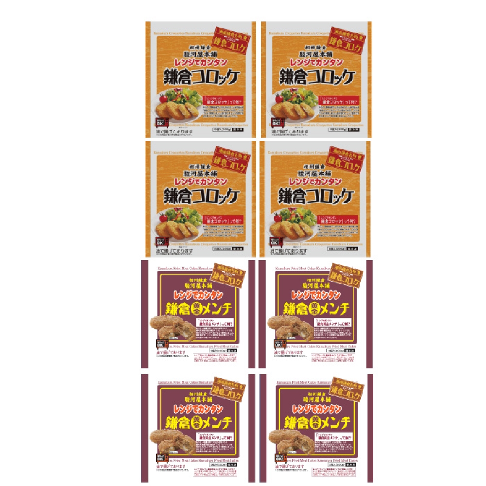 内容:レンジでカンタン鎌倉コロッケ225g(45g×5)×4、レンジでカンタン鎌倉黄金メンチ200g(40g×5)×4