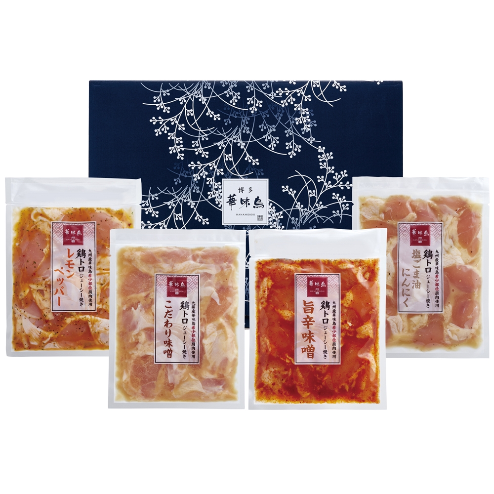 内容:九州産華味鳥 鶏肉トロジューシー焼き こだわり味噌、九州産華味鳥 鶏肉トロジューシー焼き旨辛味噌、九州産華味鳥 鶏肉トロジューシー焼きレモンペッパー、九州産華味鳥 鶏肉トロジューシー焼き 塩ごま油にんにく各200g×各1