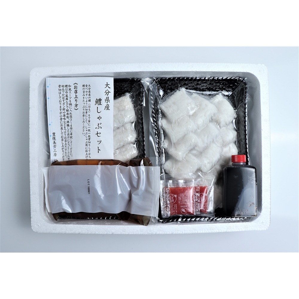 内容:はも切身180g×2、かぼすポン酢70ml×1、もみじおろし5g×4、和風魚介だしスープ250g×1