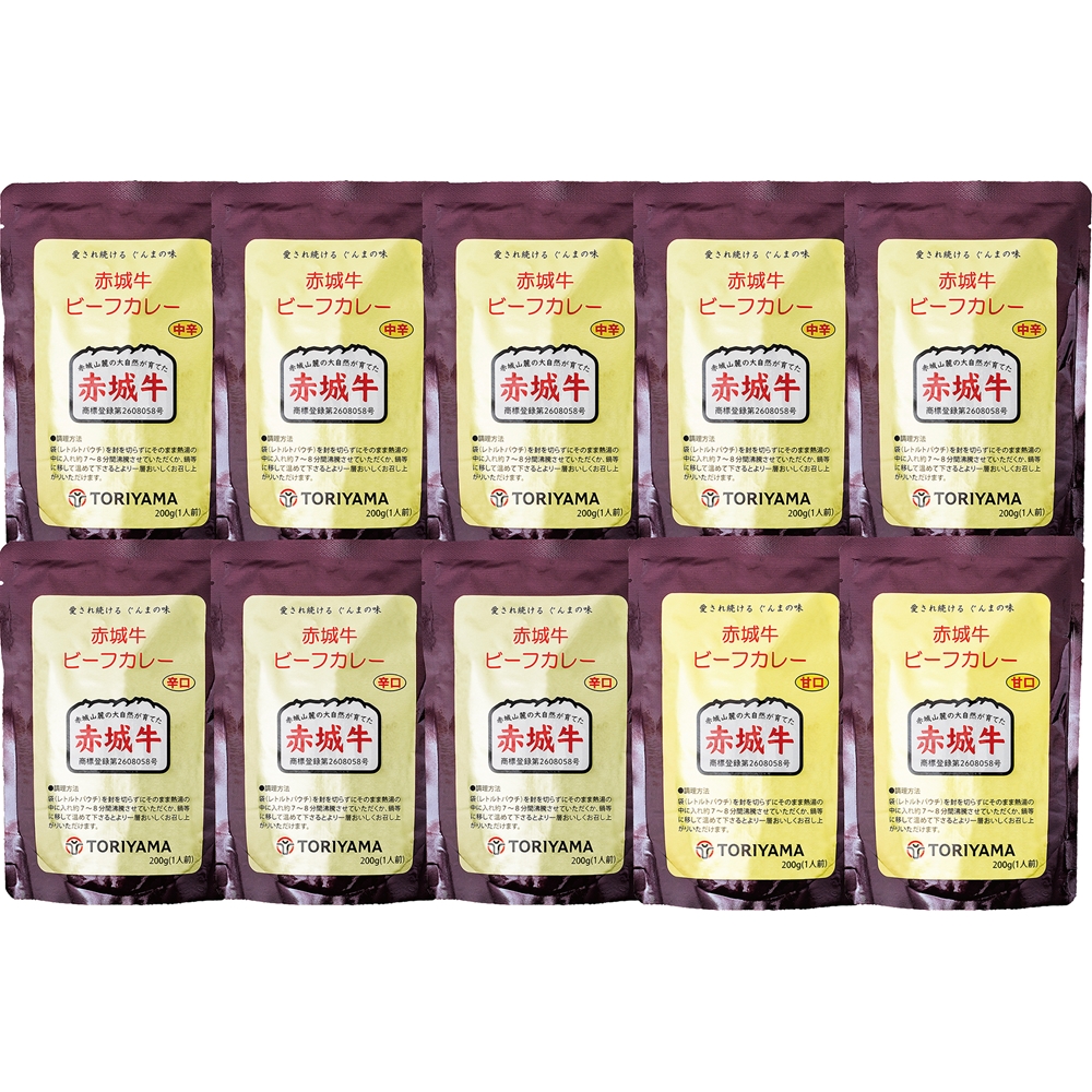 内容:赤城牛カレー200g×10(中辛5個、辛口3個、甘口2個)