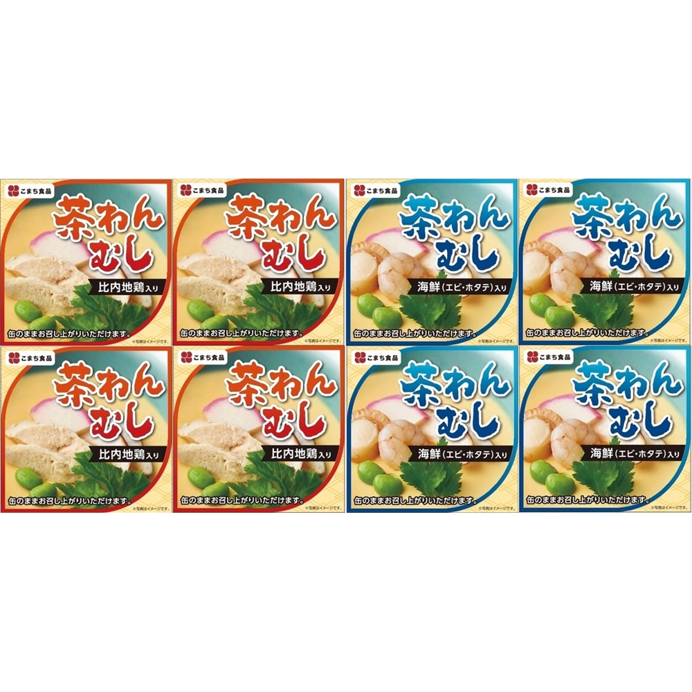 内容:比内地鶏肉入り茶わんむし90g×4缶、海鮮茶わん蒸し詰90g×4缶