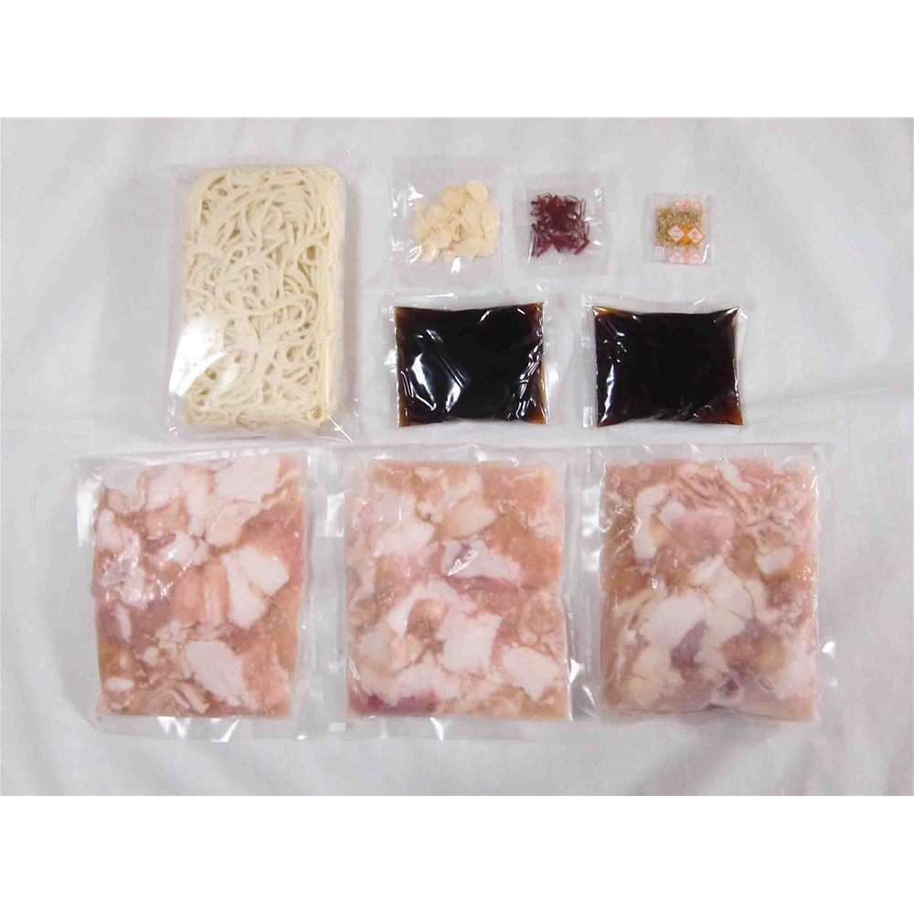 内容:牛もつ肉(国内産)100g×3袋、ちゃんぽん麺180g×1玉、にんにく3g×1袋、唐辛子0.5g×1袋、白ごま0.7g×1袋、もつ鍋用濃縮スープ85g×2袋