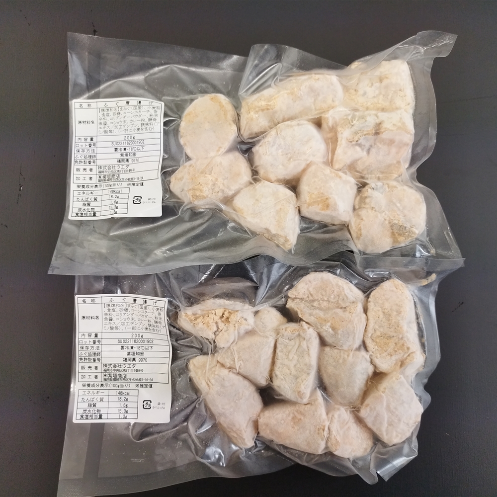 内容:マフグ唐揚げ用切身(衣付き)200g×2