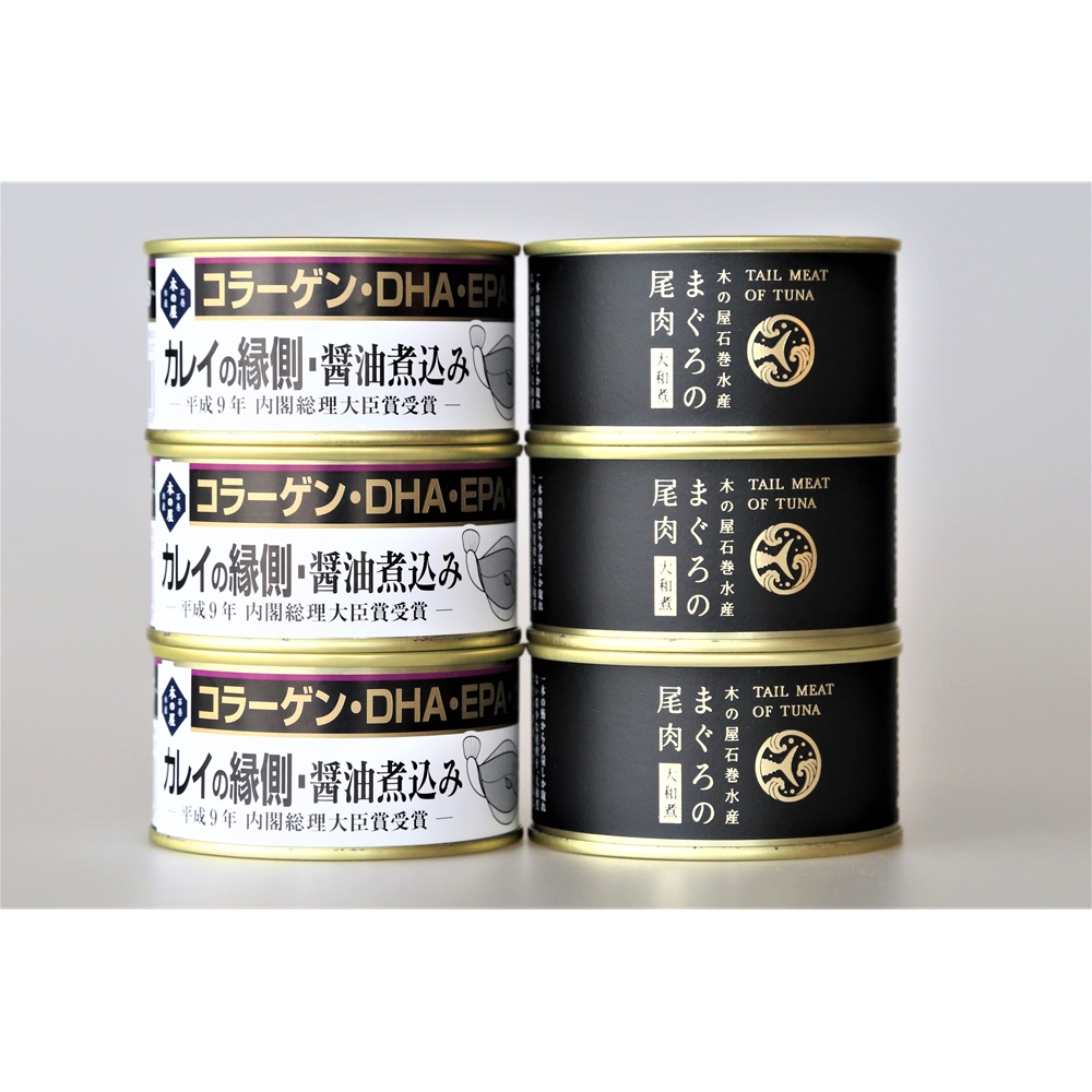 内容:まぐろ尾肉大和煮170g、カレイの縁側醤油煮込み170g×各3缶 ※ギフト箱