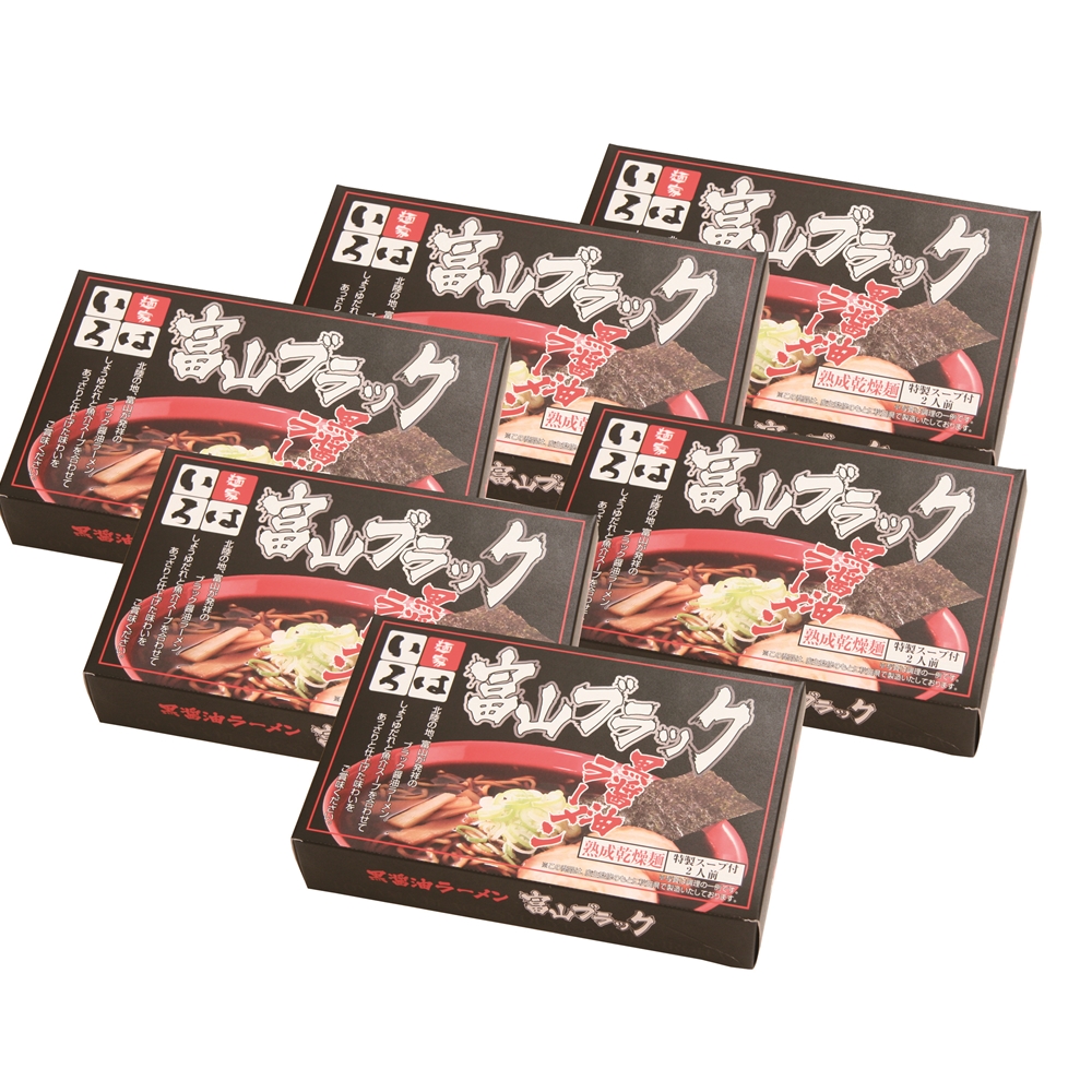 富山ブラックラーメン 「麺家いろは」 醤油味 乾麺12食
