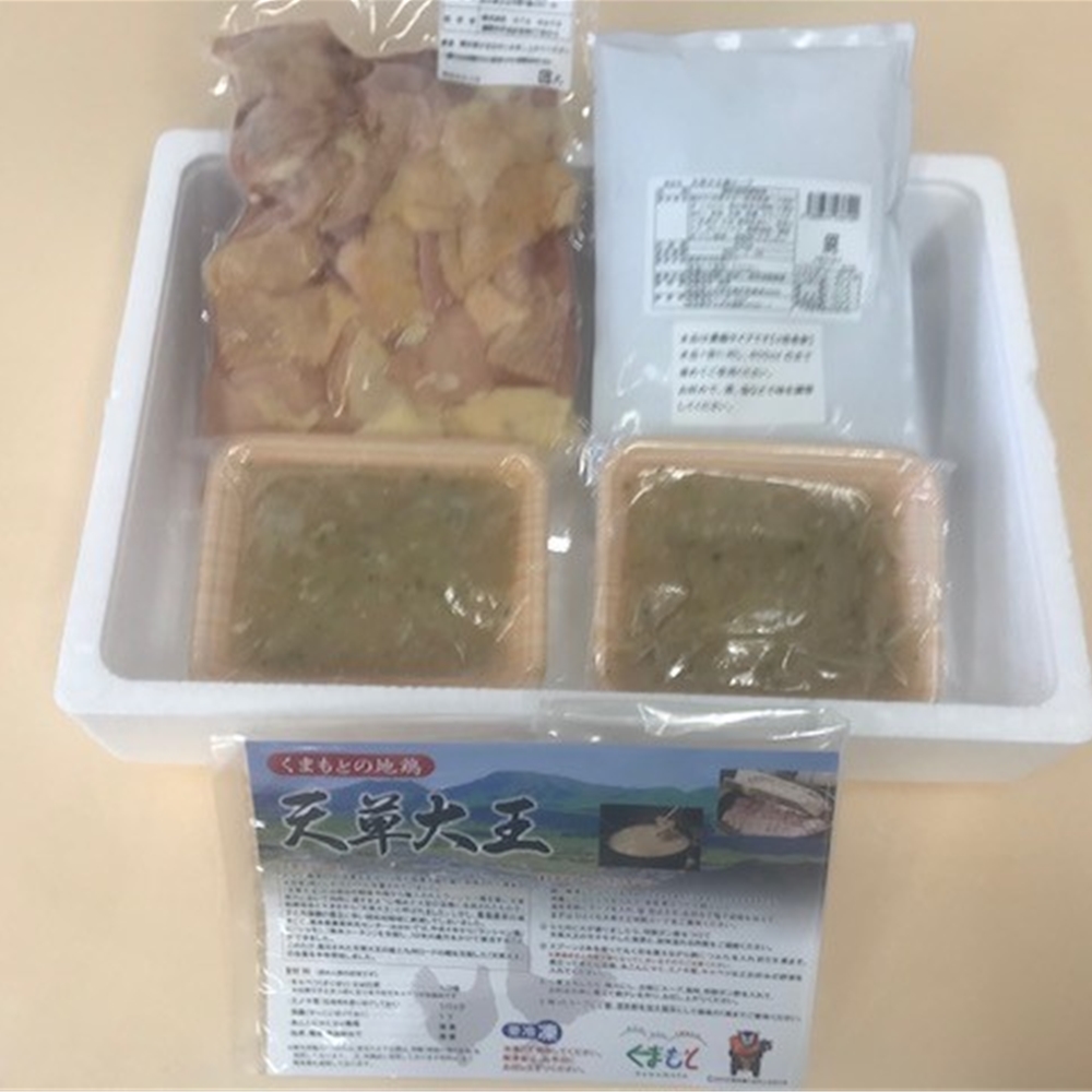 内容:天草大王鶏肉(もも肉、むね肉)カット400g、特製つみれ150gx2、水炊きスープ(濃縮タイプ)400ml
