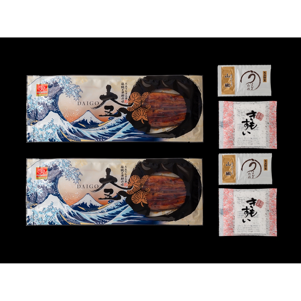 内容:蒲焼×2尾(計240g)、肝吸い×2、山椒付たれ×2