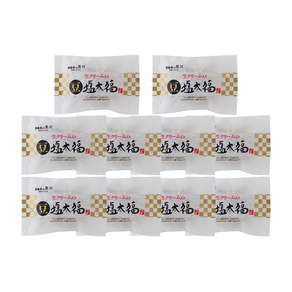 岡山 大正9年創業 「おもちの黒川」 生クリーム入り豆塩大福 10個