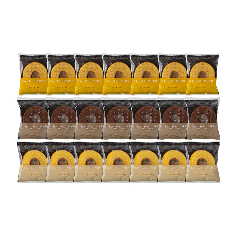 内容:しっとりなめらかおとなのばうむ プレーン、メープル、ココア×各7