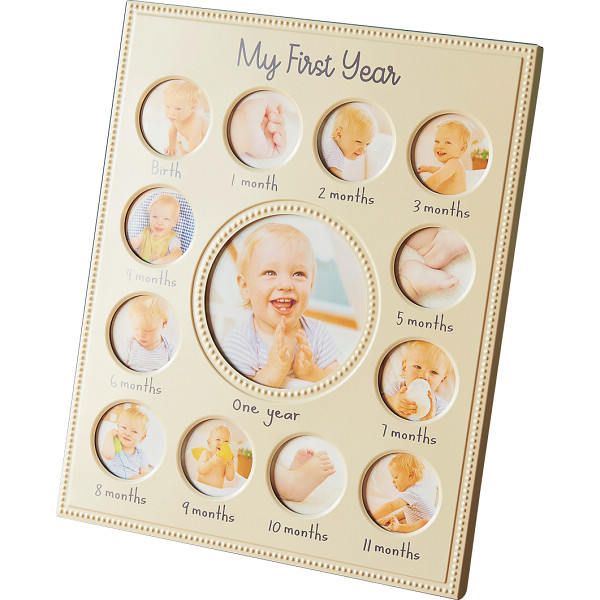 ご出産時から1年間、月ごとに写真を飾れます。赤ちゃんの成長過程の記録を写真で楽しめます。祖父、祖母、ご親戚等にも思い出として写真を入れてプレゼントしても素敵な贈り物になります。赤ちゃんの誕生から最初の1年間を大切なメモリーとして役立てられるフォトフレーム。