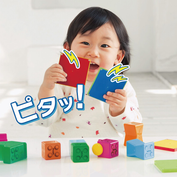 内容:セット内容:20パーツ(立体キューブ10パーツ、平面プレート10パーツ)、知育あそびガイド、対象年齢:1歳~