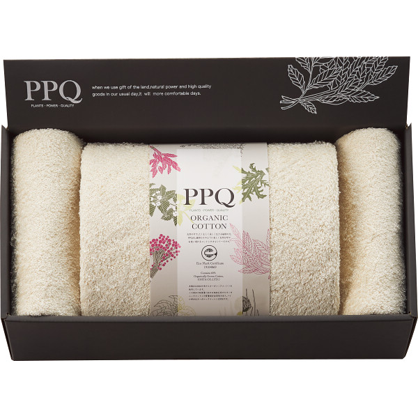 自然の中で、たくましく美しく生きる植物の力、その植物たちのように美しく自然な形でお使いいただけるタオル、PPQ。オーガニックコットンをパイル部分に100%使用しています。バスタオル・フェイスタオルのセットです。
