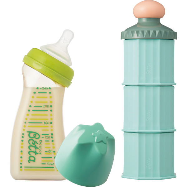 ドクターベッタ人気の広口哺乳瓶とミルクケースのセットです。ドクターベッタ哺乳びん ブレイン広口WS2ー240ml(GREEN)ミルクケース キャッスル(セラドン)