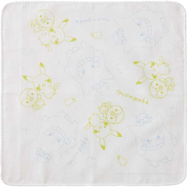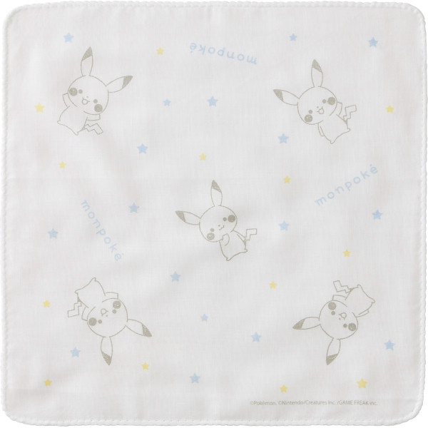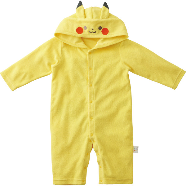 カバーオールはフード部分がピカチュウの顔になっていて、背中には模様としっぽの刺繍入りです。フードをかぶればピカチュウになったような気分です。巾着袋は手提げにもなる仕様です。ボディミニは「ピカチュウワンポイント」と「ポケモンたち」をプリントしています。肩にボタンがない着せやすいショルダークロス仕様です。ガーゼハンカチは吸水性の良い綿100%でそれぞれ違うプリントの3枚組です。