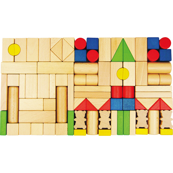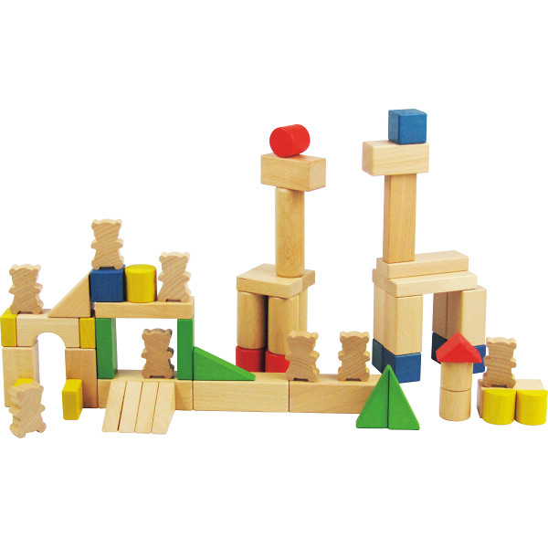 いろいろな形、いろいろな色のブロックやつみきを自由に組み合わせて様々な形に作り上げていく知育玩具です。積み上げては壊したりとお子様の創造のままに表現できます。