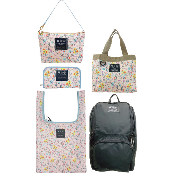 内容:(リュック)内部=オープンポケット×1・前面=ファスナー×1・側面=オープンポケット×2・開閉=ファスナー式 (エコバッグ)開閉=オープン式(マルチケース)内部=オープンポケット×3、カード入れ×3、ファスナーポケット×1・開閉=ファスナー式(ミニバッグ)開閉=ファスナー式・(ミニトートバッグ)内部=中仕切り付き(3室)・開閉=マグネット式
