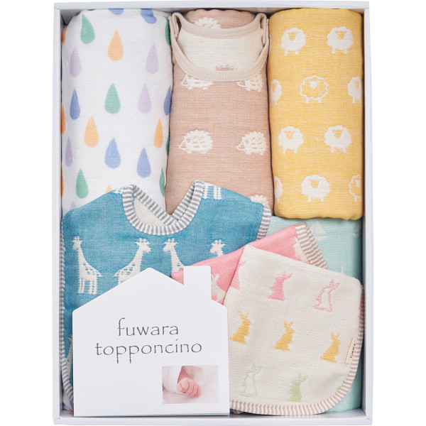 内容:ガーゼケット・バスタオル・スリーパー・トッポンチーノ・スタイ各1枚・ハンカチ2枚