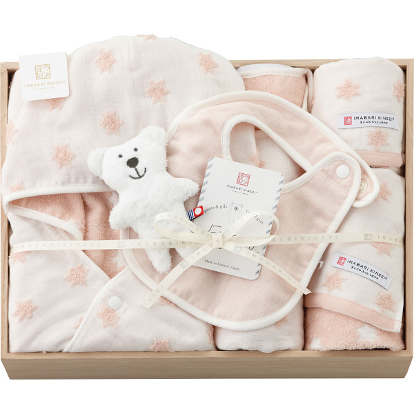 内容:フード付きバスポンチョ・スリーパー・フェイスタオル・ハンドタオル・スタイ・にぎにぎ各1※にぎにぎは手洗いとなります。