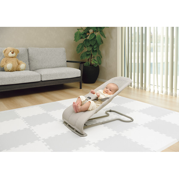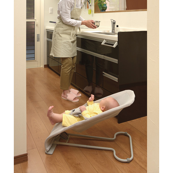 動きに合わせて自然に揺れる全面メッシュシートで通気性のよいバウンサーです。赤ちゃんの動きに合わせたやさしい揺れで、あやし効果があります。