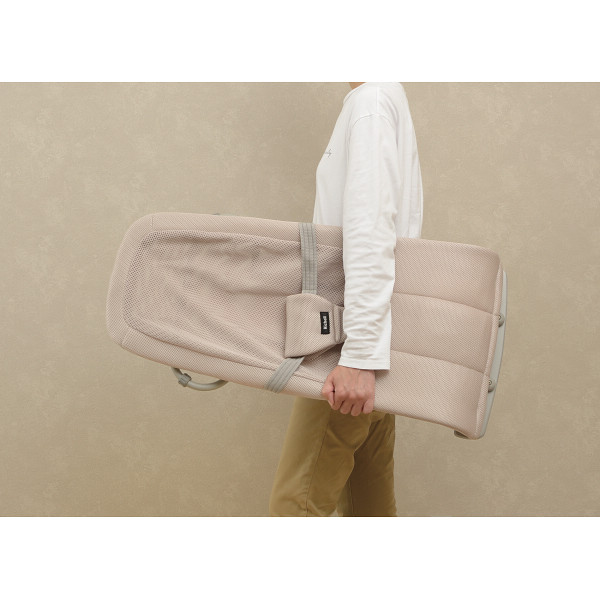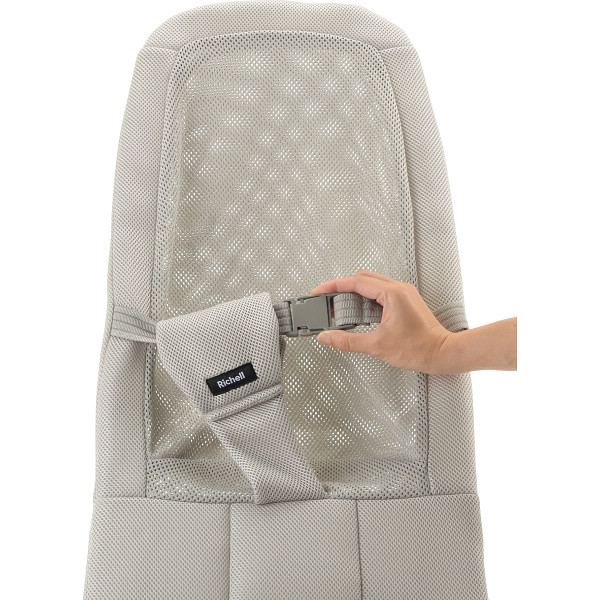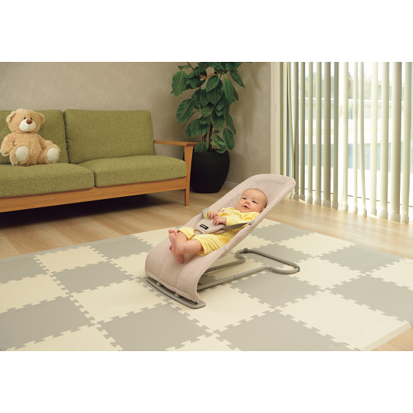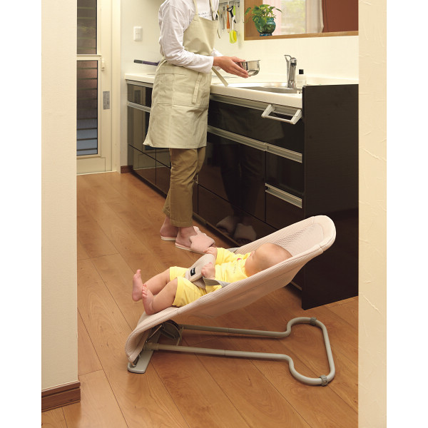 動きに合わせて自然に揺れる全面メッシュシートで通気性のよいバウンサーです。赤ちゃんの動きに合わせたやさしい揺れで、あやし効果があります。