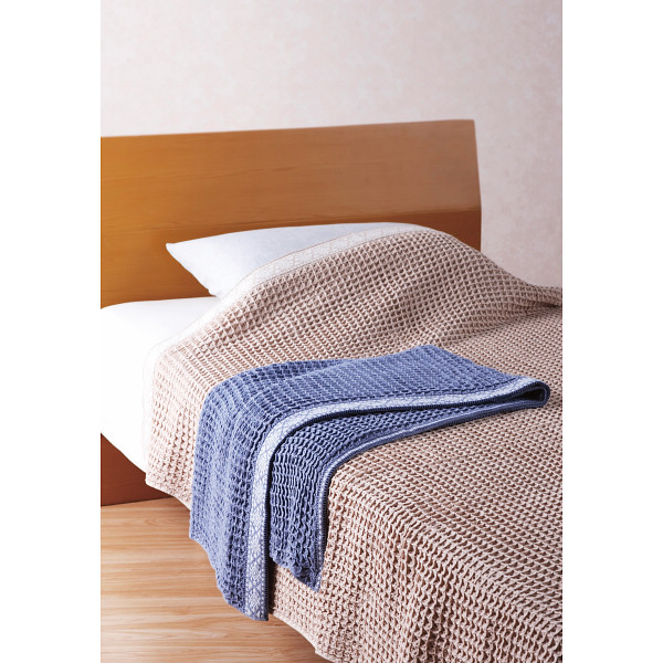 ①ワッフル地による凹凸が空気を含むことで保温性が高い ②軽やかな肌触り ③コンパクトな包装ですっきり! ④お部屋になじむナチュラルなカラー(ネイビー・ベージュ)