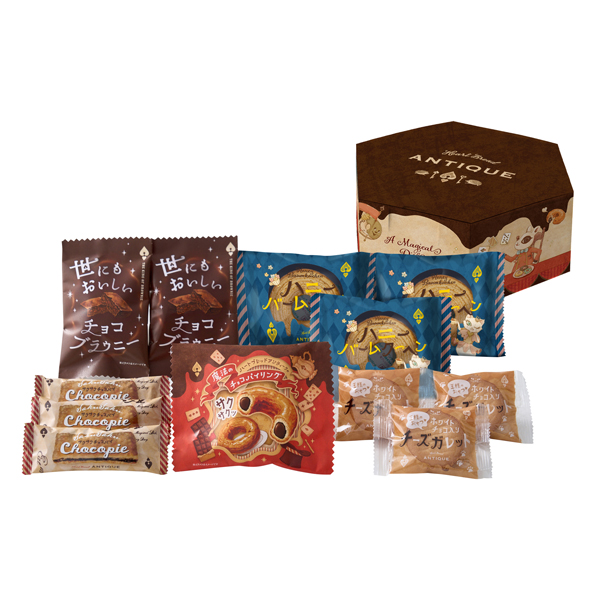 内容:サクサクチョコパイ・ハニーバームクーヘン・ホワイトチョコ入りチーズガレット×各3個、世にもおいしいチョコブラウニー×2個、魔法のチョコパイリング×1個