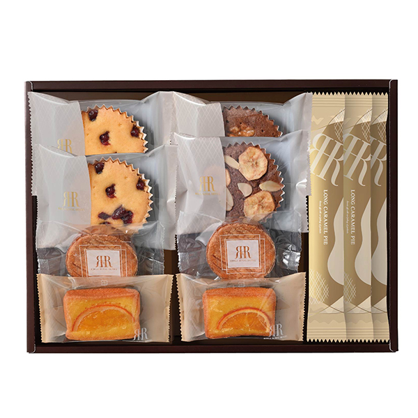 内容:プチケーキ(ベリー×2個、ショコラ&バナナ・ショコラ&ナッツ×各1個)、ガレットブルトンヌ・オレンジケーキ×各2個、ロングキャラメルパイ×3本