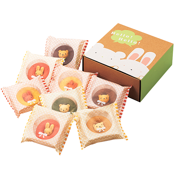 内容:うさぎイチゴ・くまチョコ×各2個、うさぎプレーン・うさぎバナナ・くま抹茶・くまキャラメル×各1個