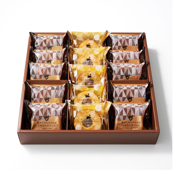 内容:焦がしキャラメルがしみ込んだバーム×10、しっとりバームクーヘン×5