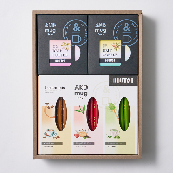 内容:ドリップパック(アロマブレンド3P・深煎りブレンド3P×各1個)、インスタントスティック(泡立ちカフェラテ・ロイヤルミルクティー・泡立ち抹茶オレ×各3本)
