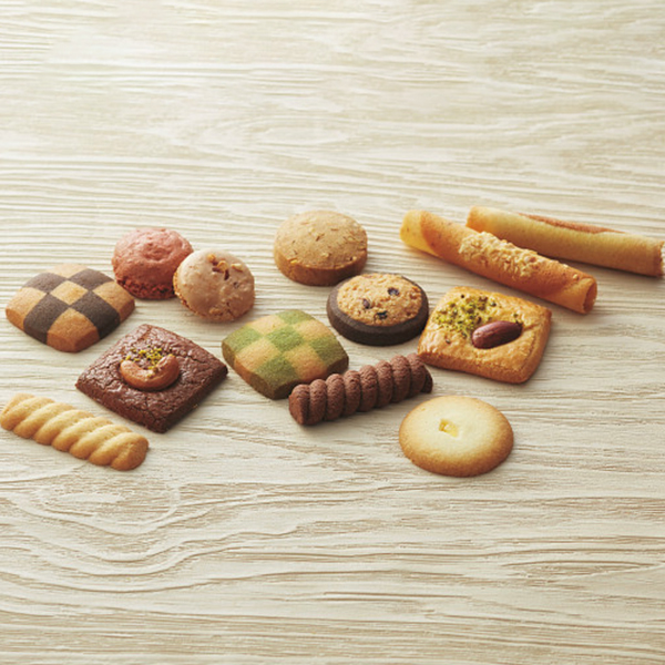内容:コルベイユ4種×各1、レモンクッキー×3、アメリカンリングクッキー×2、ツイストクッキー2種×各2、アーモンドマカロン×1、ストロベリーマカロン×1(計15個)