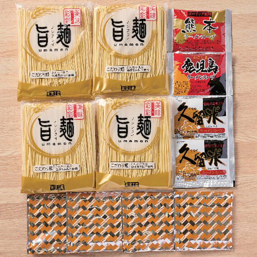 内容:麺80g×4、久留米スープ38g×2、熊本スープ40g、鹿児島スープ35g、ラーメンふりかけ3g×4