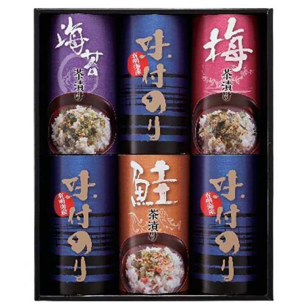 内容:味付のり(8切24枚入)×3、梅茶漬け(7g×4袋入)、海苔茶漬け(5.5g×4袋入)、鮭茶漬け(7g×4袋入)
