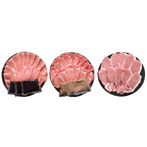 内容:ロース肉(しゃぶしゃぶ用)400g×2、ゆずポン酢・ごまだれ各50g×3、ロース肉(とんかつ・ステーキ用)100g×10