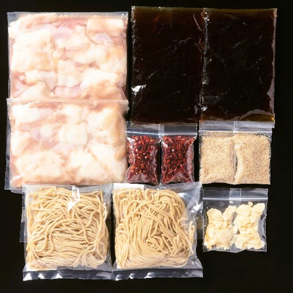 燻製のスモーキーな香りと深い味わい、ぷりぷりの食感の和牛もつを醤油スープが引き締めるもつ鍋セット。ソフトでコシのある生麺ならではのちゃんぽんが締めの満足を引き立てます。