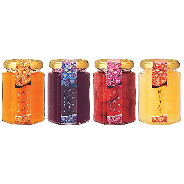 内容:あんず・ブルーベリー・いちご・紅玉りんご各145g
