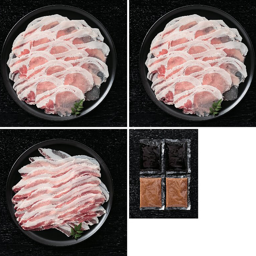 内容:ロース肉計400g、バラ肉250g、ゆずポン酢・ごまだれ各50g×2
