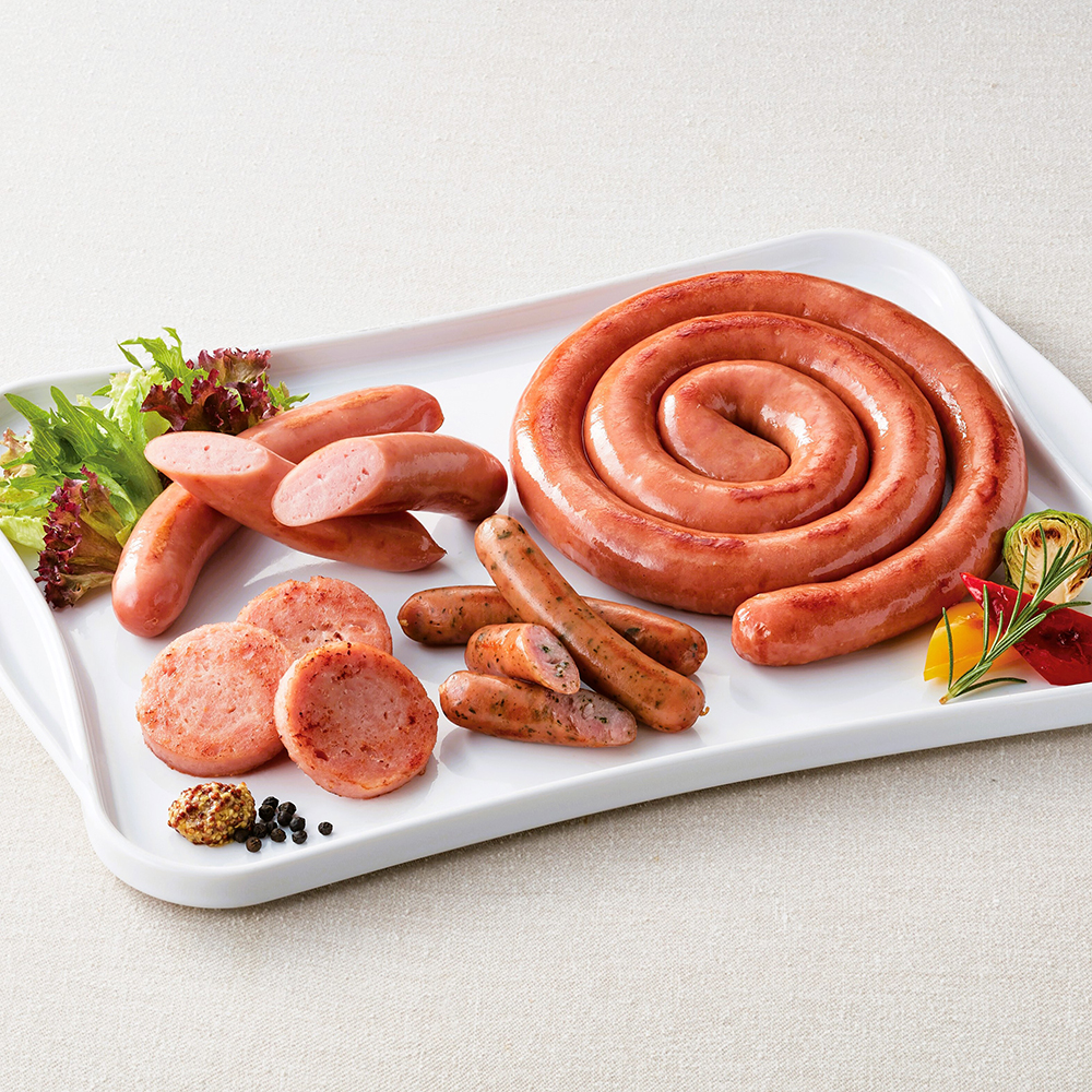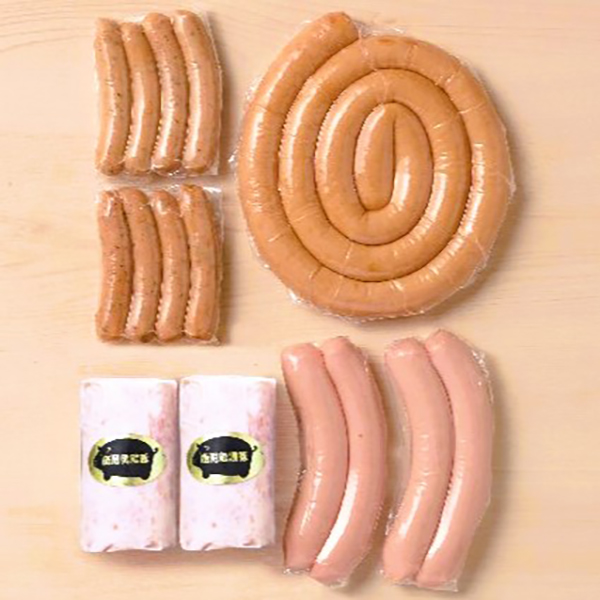 内容:屋久島茶葉入りウィンナー100g×2、ボロニア180g×2、羊腸フランク120g×2、ぐるぐるウィンナー400g(約80cm)×1