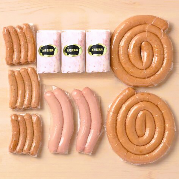 内容:屋久島茶葉入りウィンナー100g×3、ボロニア180g×3、羊腸フランク120g×2、ぐるぐるウィンナー400g(約80cm)×2