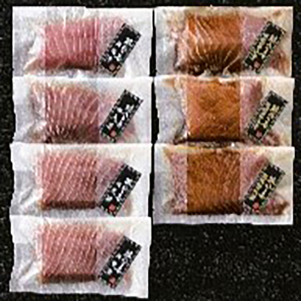 内容:鮪ハラモ幽庵漬100g×4、鮪ハラモ照焼醤油漬100g×3